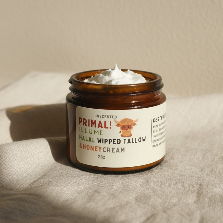 Pure, nourishing honey tallow cream made with 100% halal ingredients.